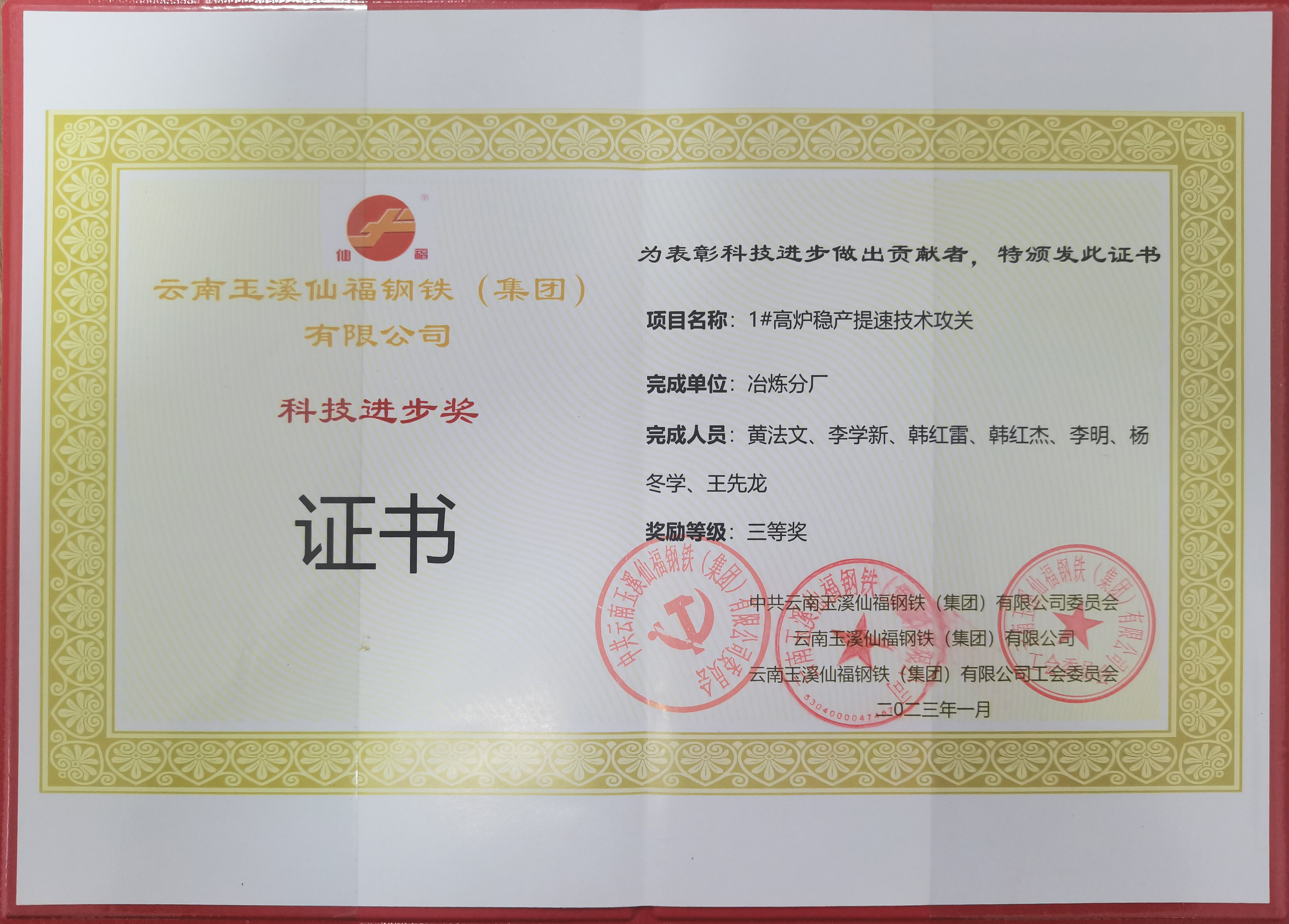 煉鐵廠秉持著科技發(fā)展是第一生產(chǎn)力的理念,認真研究鉆研克服困難,通過煉鐵廠全員共同努力,組織攻關的核心技術改造榮獲科技進步獎49項,獲得實用新型專利27項。