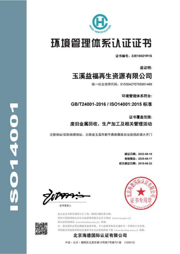 • 玉溪益福再生資源有限公司簡介